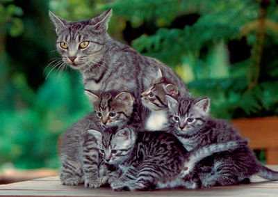 Das Gebiss der Katze ist als [blank_start]Fleischfressergebiss[blank_end] ausgebildet. Im Ober- und Unterkieferknochen sitzen jeweils ein Paar kräftige, spitze Eckzähne ([blank_start]Fangzähne[blank_end]), mit denen die Beutetiere gefasst und getötet werden.