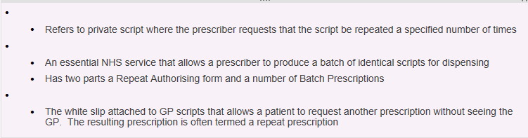 Cannot be made for [blank_start]Sch 1, 2 or 3[blank_end] CDs, except Phenobarbitone for the treatment of [blank_start]epilepsy[blank_end]