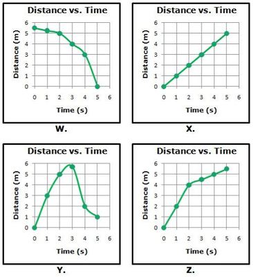 Balanced forces will cause an object to move at a constant speed or to remain at rest. Which of the following graphs shows this situation?