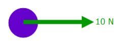The image below shows a force of 10 N being applied to an object. The force is being applied toward the right, and the object is accelerating toward the right. No other force is acting on the object. Examine the image, and then answer the question that follows.