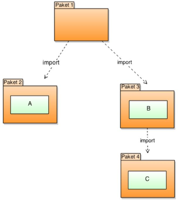Welche Aussagen zum folgenden Paketdiagramm sind korrekt?