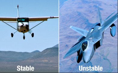 Unstable about the lateral axis