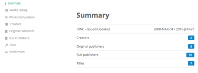 The Single Work Dashboard, a new feature of CIS-Net 5, provides information on any single musical Work that has been posted to CIS-Net by contributing Societies.