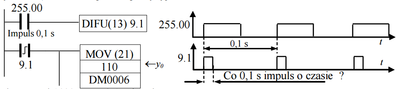 Wyjście 1.00 załączy się po czasie 3 sek a wyłączy po 5 sek jak START przestanie być jedynką