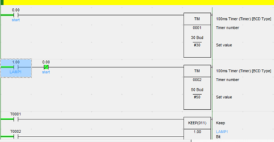 Stan jedynki styku start ( przyciśnięty ) powinien trwać dłużej niż 3 sekundy, aby było opóźnienie wyjścia 1.00 o 3 sekundy
