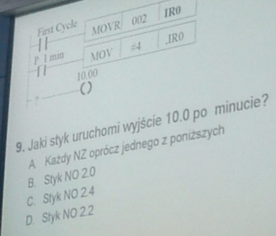 Jaki styk uruchomi wyjście 10.0 po minucie?