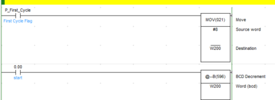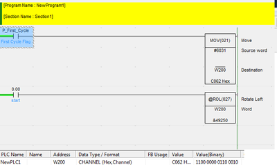 Po wciśnięciu przycisku start (NO) ustawione zostaną następujące bity słowa W200