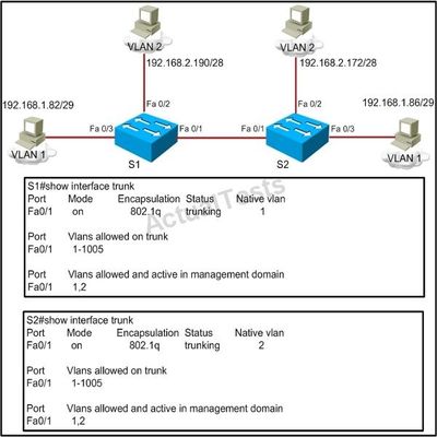 • Check the trunk encapsulation mode for SwitchA's fa0/2 port.