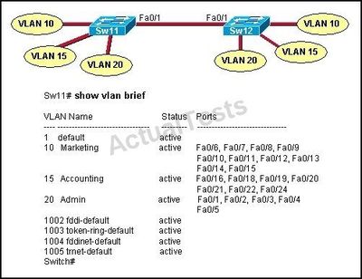 • A router is required for hosts on SW11 in VLANs 10 and 15 to communicate with hosts in the same VLAN on Sw12.