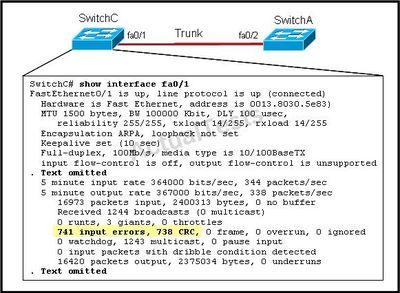 • Check the duplex mode for SwitchA's fa0/2 port.