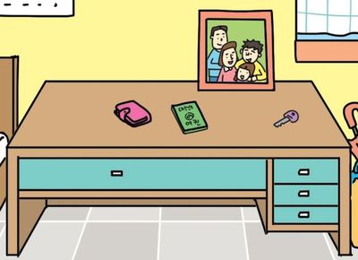 책상 위에 있어요.