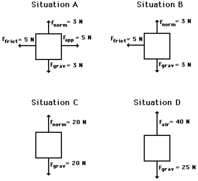 In which situation(s) is balanced forces being applied?