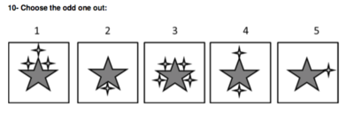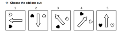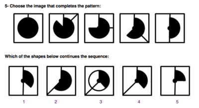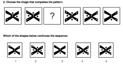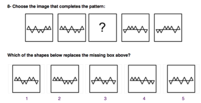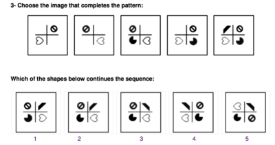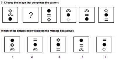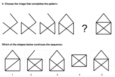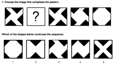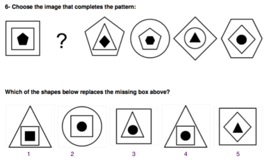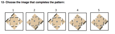 1- Choose the image that completes the pattern on the first row. Which of the shapes below continues the sequence: