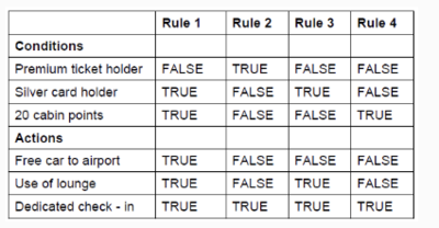 Given the following decision table: What is the expected result for each of the following test cases (TC1 and TC2)?