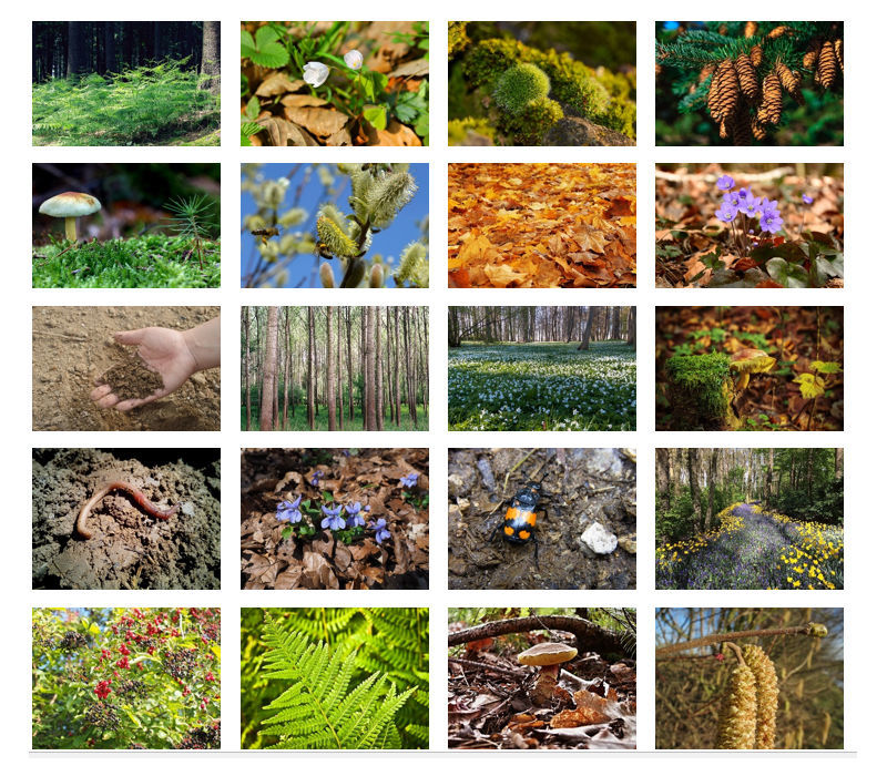 Wähle die Antworten aus, die einen gesunden Mischwald kennzeichnen.