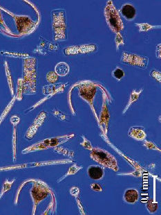 Viele Kieselalgen schweben frei im Wasser und gehören dadurch zum Plankton.