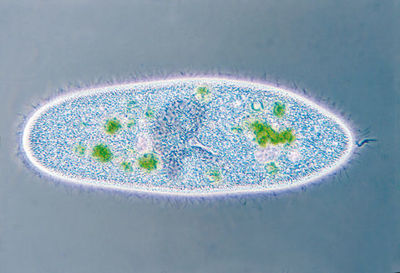 Der spindelförmige Körper des Pantoffeltierchens ist mit Wimpern bedeckt, die der Fortbewegung dienen.