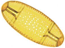 Die gesuchte Alge hat eine natürliche Größe etwa 0,2mm, ist flach, leicht oval und von beiden Seiten her in