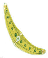 In Gewässern die mit faulenden Stoffen oder Jauche verunreinigt sind, findet man Augentierchen oft in solch großen Mengen, dass das Wasser grün erscheint. Die Farbe kommt vom Chlorophyll in den Farbstoffträgern. Mit diesen kann es Fotosynthese betreiben. Es ernährt sich also wie eine Pflanze. Es kann aber auch wie ein Tier organische Zellstoffe aufnehmen.
