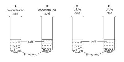 The diagram shows an experiment to compare the speed of reaction when limestone chips are added to acid.