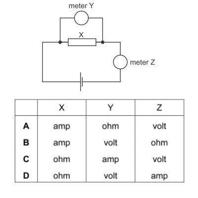 The circuit shown contains a component X and two meters Y and Z in an electrical circuit.