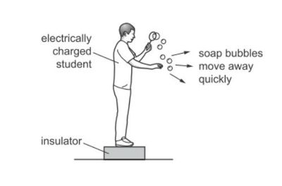 The bubbles must have the same charge as the charge on the student.