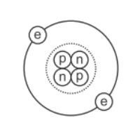 The diagram shows a helium atom.