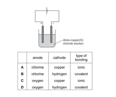 The diagram shows the electrolysis of a dilute solution of copper( II ) chloride using inert electrodes.