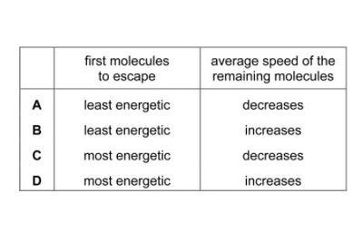 Which row in the table shown is correct for the escaping molecules and for the temperature change of the remaining
