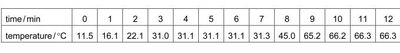 A sample of a solid is heated for 12 minutes and its temperature noted every minute.