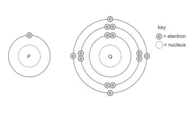 The diagram shows the electronic structures of atoms P and Q.