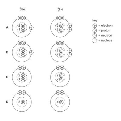 Which two diagrams show the arrangement of particles in these two isotopes?