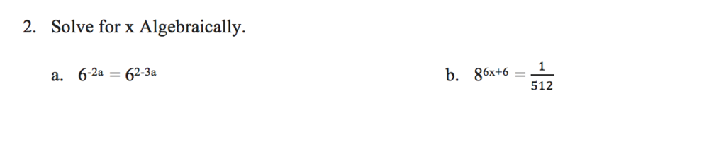Solve for x or a: Write the numerical answer in the blank, write your answers as a decimal, if necessary!