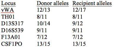 STR analysis was performed on a bone marrow donor and recipient pair with the following results. Which loci are informative?