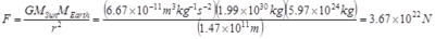 At perihelion the gravitational force of the sun exerted on the Earth is the following equation. What is the force exerted on the sun by the Earth?