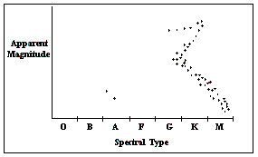 Refer to the H-R diagram. How would the H-R diagram of a more distant star cluster look different?