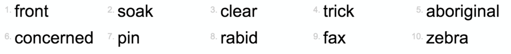 Take two minutes to memorize all of these words in the correct order. When prepared, click the orange button and type "ready" into the box.