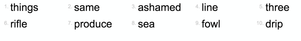 Take one minute to memorize all of these words in the correct order. When prepared, click the orange button and type "ready" into the box.