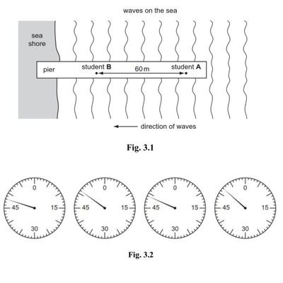 In an experiment, two students investigated the speed and frequency of waves on the sea. This is shown is Fig. 3.1.