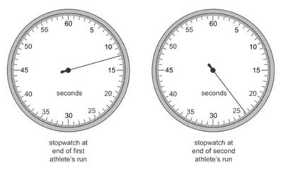 A stopwatch is used to time an athlete running 100 m. The timekeeper forgets to reset the watch to zero before using it to time another athlete running 100 m.