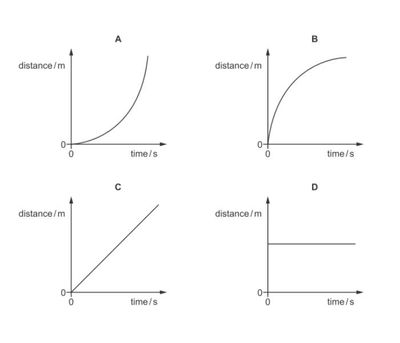 The diagram shows distance/time graphs.