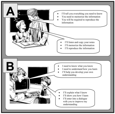 Encouraging students to use active techniques to create knowledge, and reflect on it.