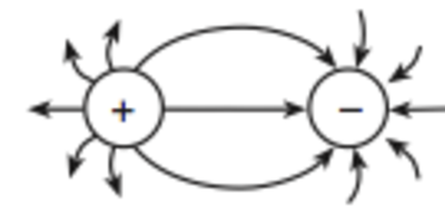 Which diagram represents the electric field between two oppositely charged conducting spheres?