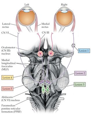 Label the Image depicting the pathways controlling horizontal eye movements.
