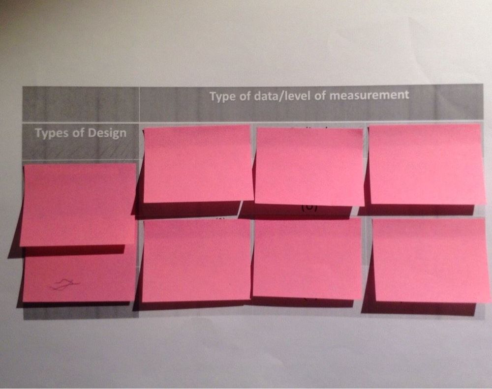 Complete the stats table. Label the type of data, type of design, and the different stats tests to use