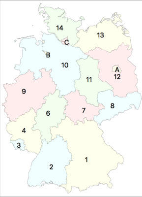 Die Felder A, B und C sind Stadtstaaten und gelten als Bundesländer.