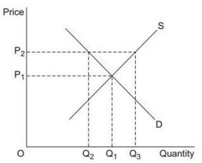 The free market price of wheat is OP1. It has been agreed as part of the Common Agricultural Policy (CAP) to maintain a price of OP2 within the EU and to do so through intervention buying. In achieving a price of OP2, the amount spent on intervention buying by the EU would be....