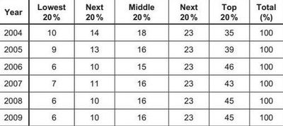 Between 2004 and 2009 the rich became poorer and the poor became richer.