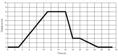 How far did this person in this velocity-time graph travel between 0 and 10 seconds?