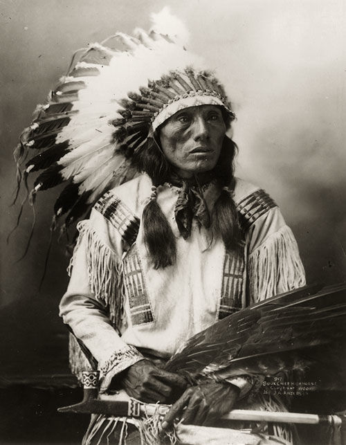 Young braves would fast and pray until an animal came to them in a vision, that animal was their [blank_start]guardian spirit[blank_end]. They'd kill that animal to make a bag which would carry all their belongings, called 'the medicine bag'.